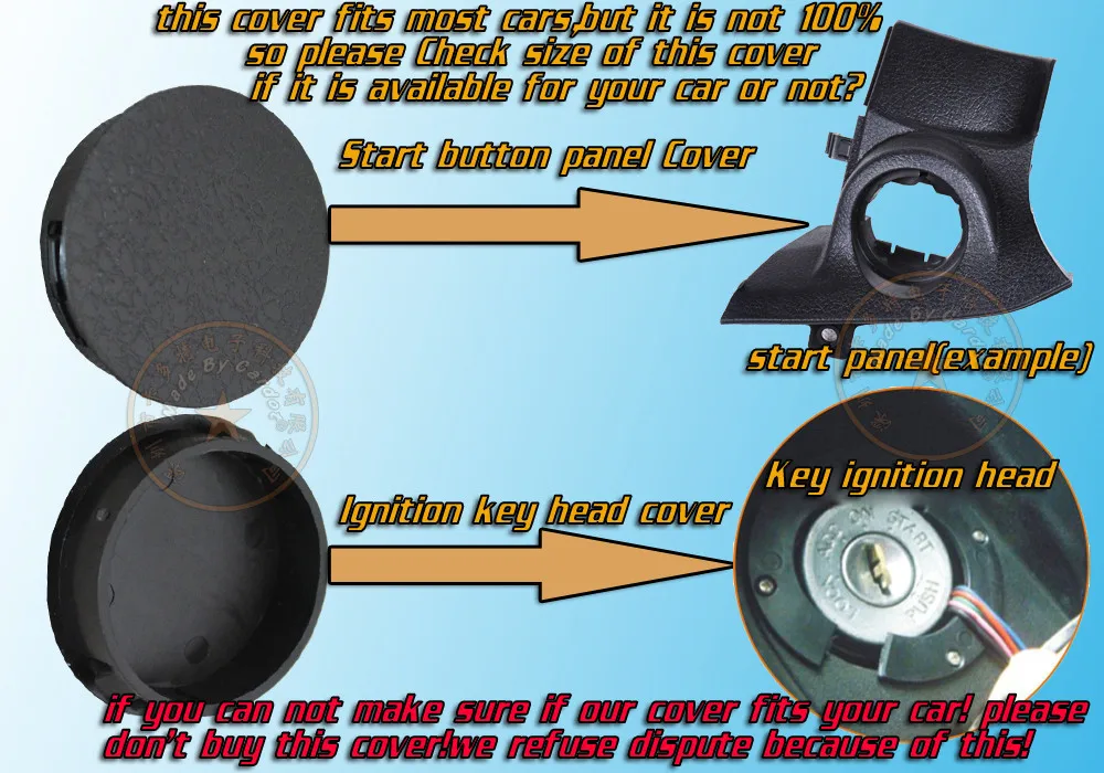 Cardot start button panel cover,key ignition head cover,it usually works with keyless entry&push start system,this is optional car accessories,fits most of cars,but we can not make sure 100% fittnesss,please check product specification as follows: